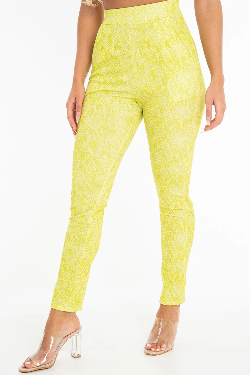 -70%Green Snake Print Crepe Tapered Trousers - Giulia—